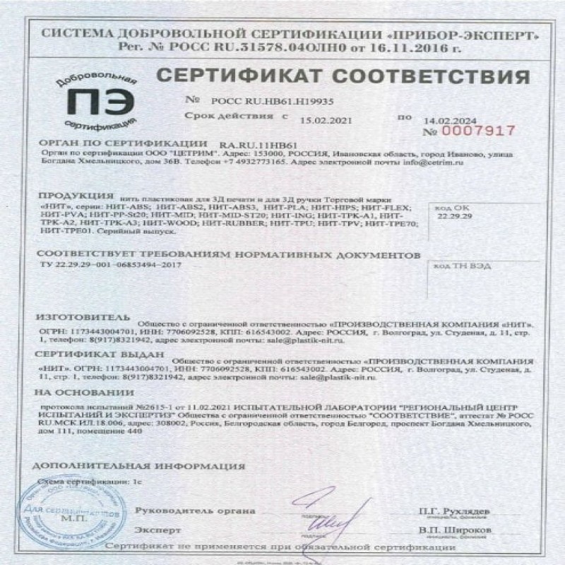 | Диаметр нити | 1.75 мм |