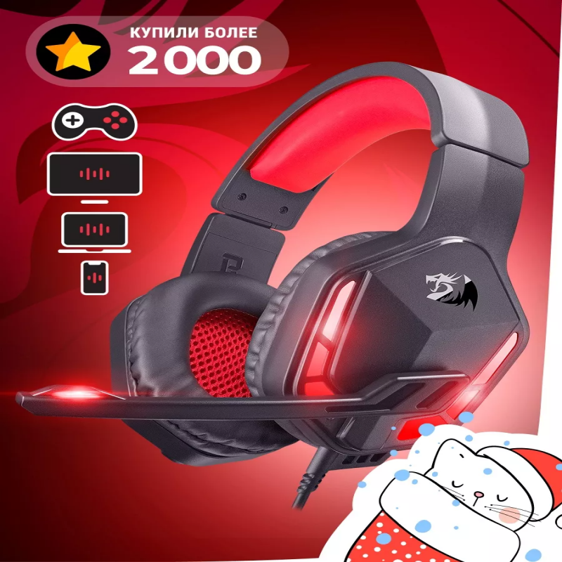 Наушники игровые с микрофоном Redragon Themis:- Удобная игровая гарнитура с моно подсветкой, регулируемым оголовьем и мягкими охватывающими амбушюрами для дополнительной звукоизоляции.- Оформление светодиодной подсветки идеально для киберспорта. Светодиодная подсветка корпуса наушников. Идеально для киберспорта, большие охватывающие амбушюры.- Охватывающие амбушюры минимизируют давление на ушную раковину и обеспечивают дополнительную звукоизоляцию.- Регулируемое оголовье. Возможность подобрать наиболее удобную длину дужки.- Направленный микрофон, обеспечивающий высокое качество речи. Выведите коммуникацию с партнерами по игре на новый уровень. Выключатель микрофона. Просто отключите микрофон, если не хотите, чтобы собеседник или партнеры по игре вас слышали.- Регулятор громкости звука. Вам не придется переключаться на управление компьютером, чтобы отрегулировать уровень громкости. Развернуть описаниеОписание