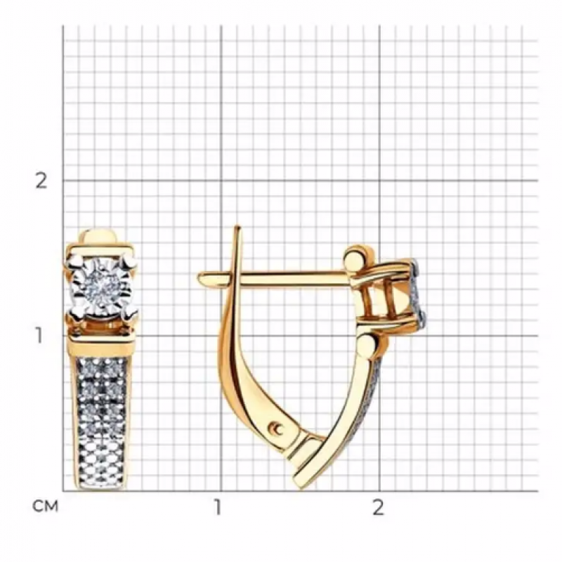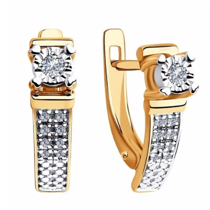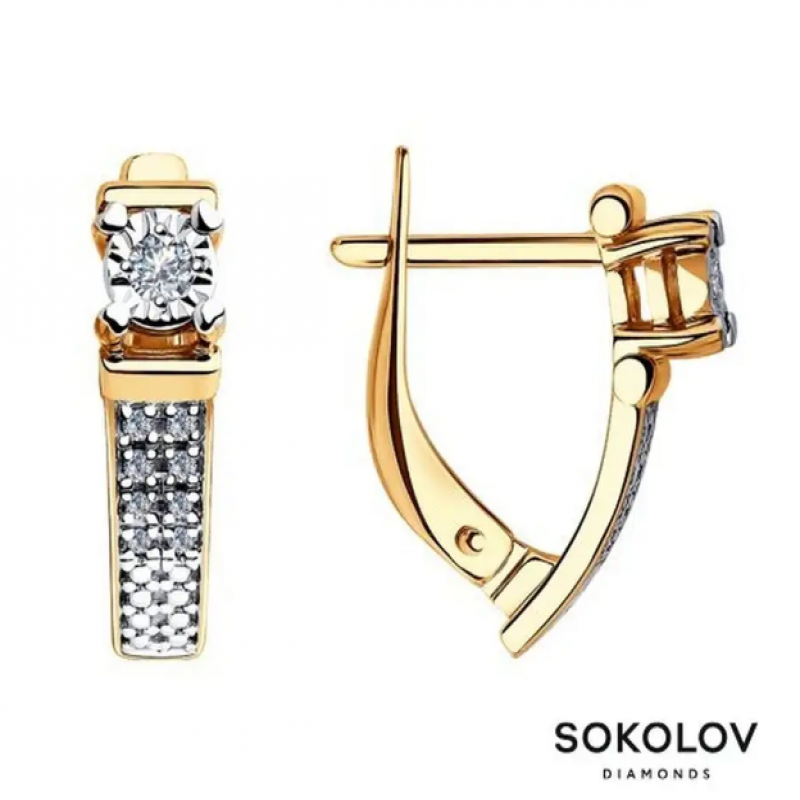 Женские золотые серьги с бриллиантами. Стильные дизайнерские серёжки с классическим английским замком отлично подходят для повседневной носки, а также эффектно дополнят нарядный, вечерний, праздничный или свадебный образ. Современные ювелирные изделия легко сочетаются с любой одеждой. Украшения SOKOLOV (Соколов) приходят в комплекте с подарочной упаковкой, идеально подходят для подарка любимой женщине, девушке, девочке на День рождения, Новый год, 8 марта, день всех влюбленных (14 февраля) или любой праздник, и повод. Значение веса на фото и в характеристиках являются примерными и могут отличаться от фактического. Изделие выполнено из красного золота 585 пробы; Вставка: 16 Бр Круг 17 0,80*0,90 0,048 2/3 А, 2 Бр Круг 57 0,073 3/6 А Развернуть описаниеОписание